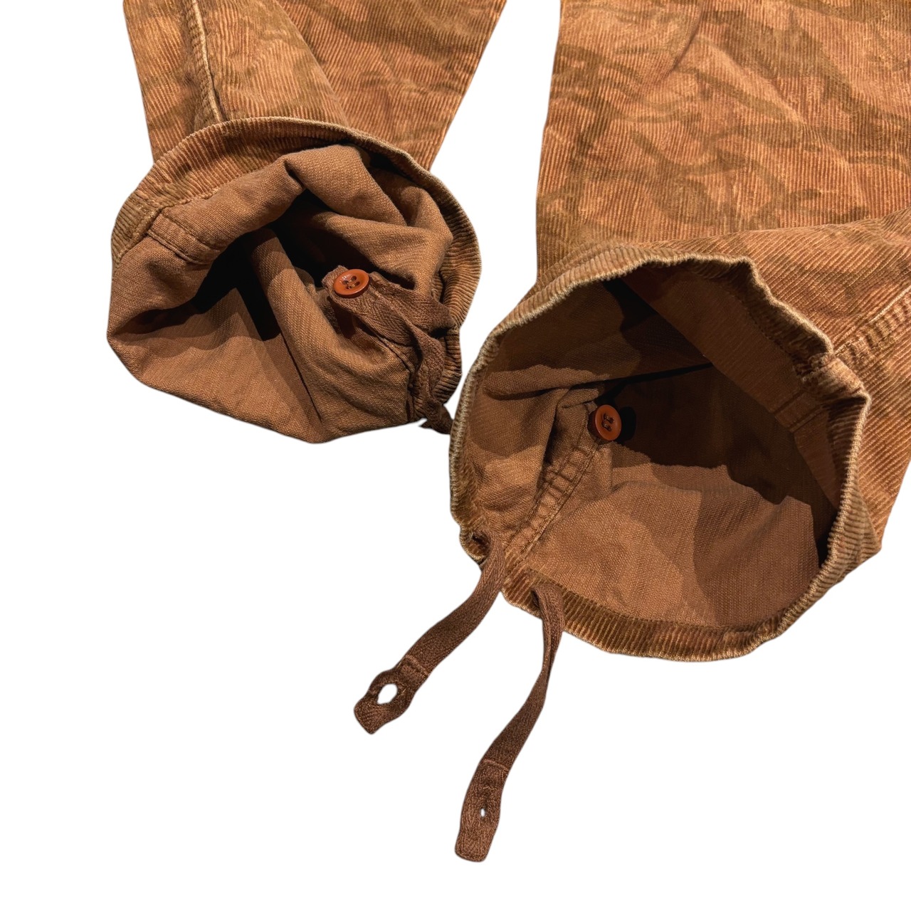 生地はブラウンカラーの細畝コーデュロイ生地。