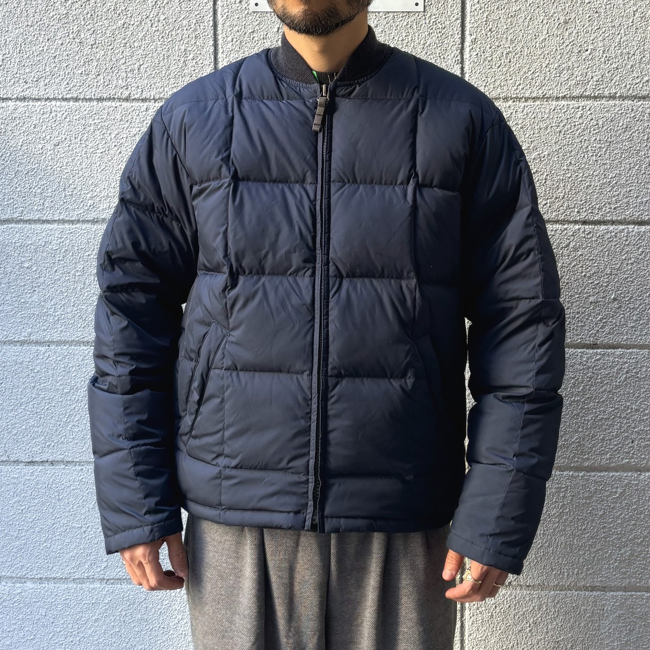 MA-1のようなスタイルで、一般的なダウンジャケット程ボリューム感が無く、汎用性の高い1着です。