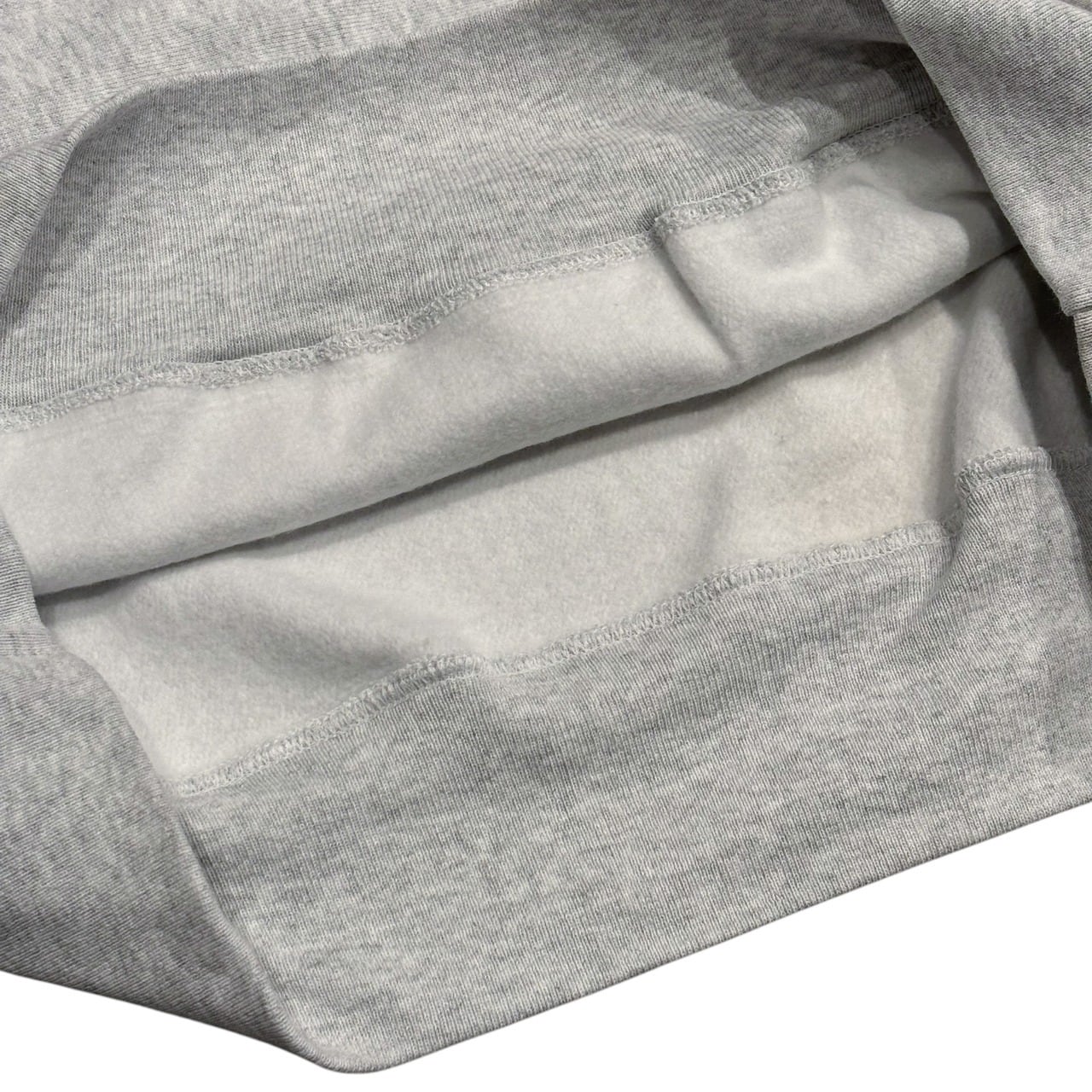 洗濯による縦方向の縮みを軽減するため通常縦方向の生地を横使いし、さらにサイドにリブを施すことで横方向の伸縮性を確保することに成功したチャンピオンの名作です。